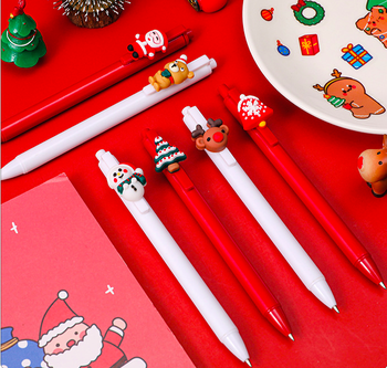 คริสต์มาสการ์ตูนปากกาหมึกเจลหดได้Multicolored Snowmanกวางเรนเดียร์ต้นคริสต์มาสSanta Clausปากกาสําหรับเด็กนักเรียน
